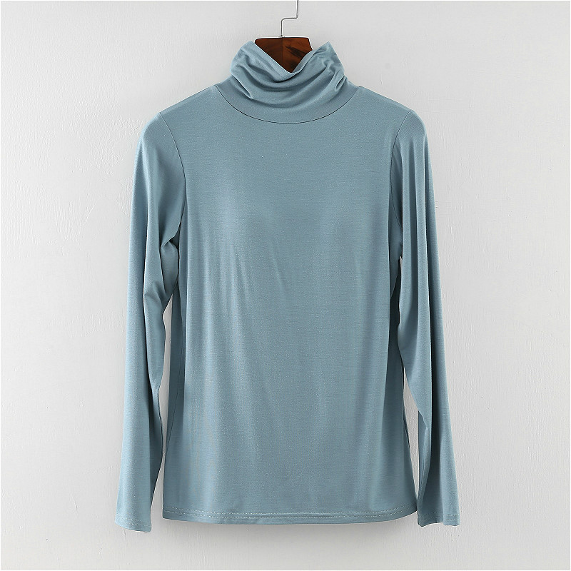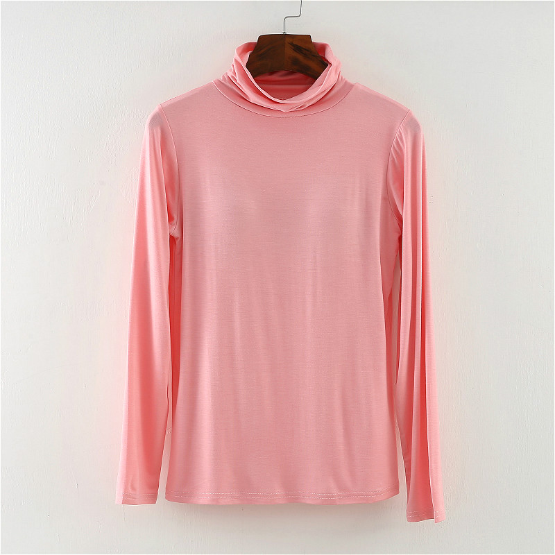 睡衣上装 全新升级后背单层女带胸垫大高领长袖 罩杯内衣一体打底衫