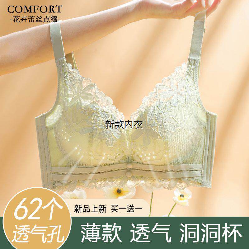 内衣女夏季 小胸聚拢透气洞洞杯调整型文胸收副乳无钢圈胸罩 超薄款