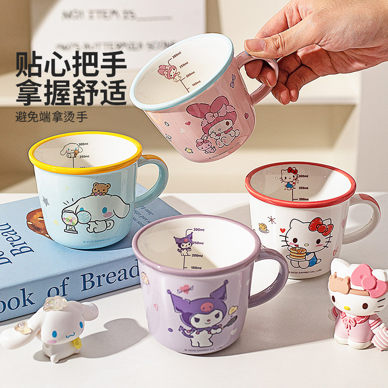 川岛屋三丽鸥马克杯儿童杯子家用喝水杯刻度牛奶杯3岁以上敞口杯