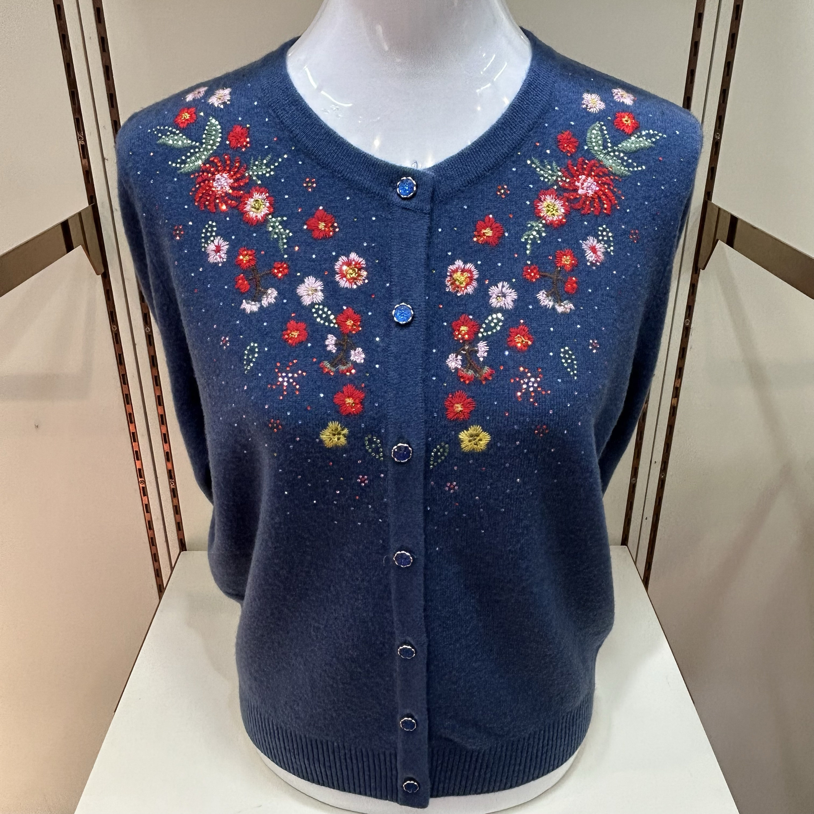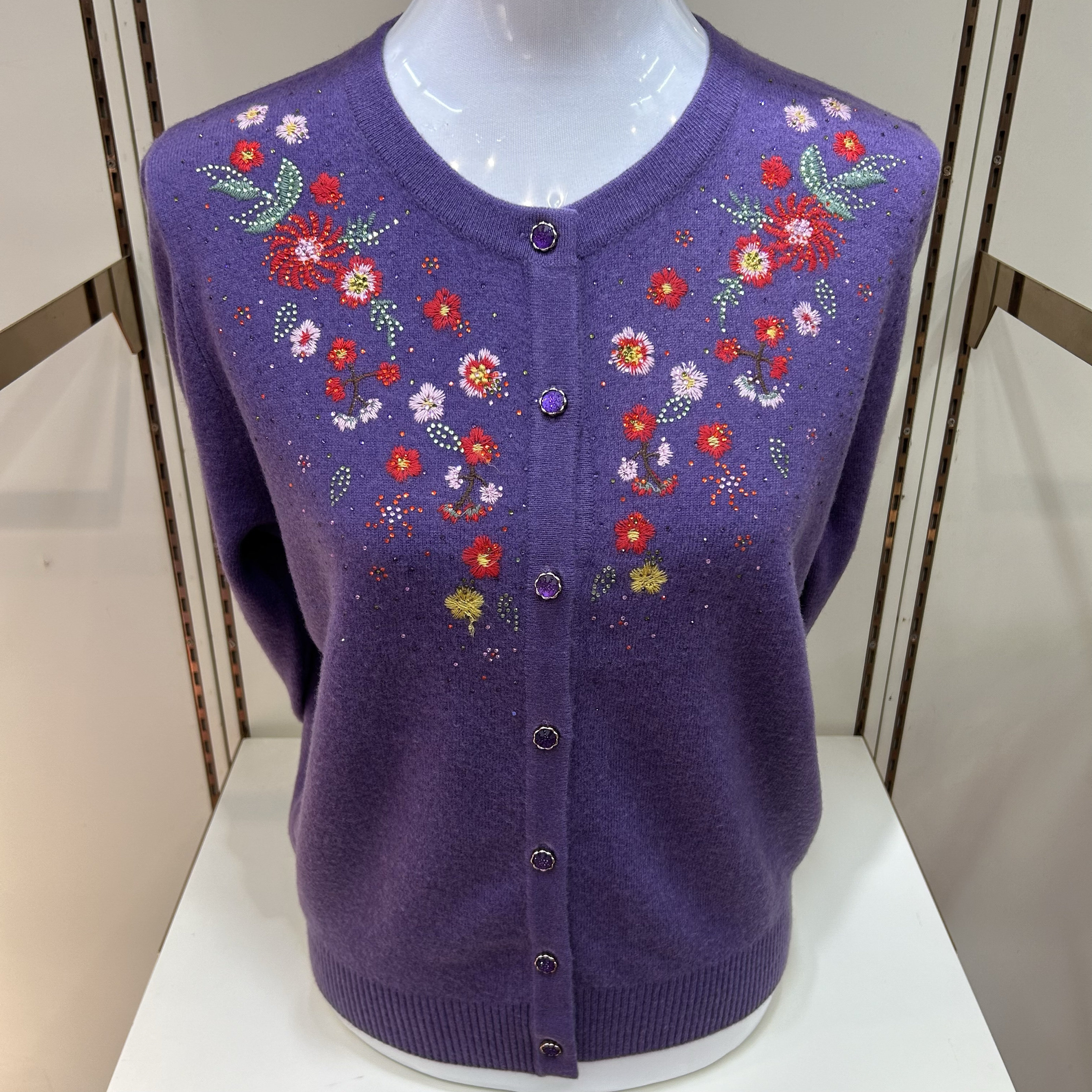奶奶装 加厚加绒针织衫 半高领花朵仿貂毛毛衣中老年妈妈装 中年女装