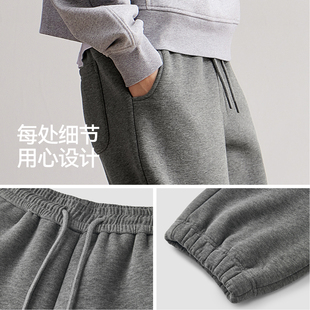 女冬季 白色直筒裤 新款 休闲长裤 子 宽松阔腿运动裤 SIINSIIN加绒卫裤