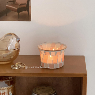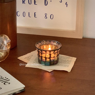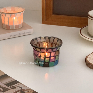 彩色马赛克玻璃烛台欧式 复古高级感餐桌烛杯摆件氛围感蜡烛台座
