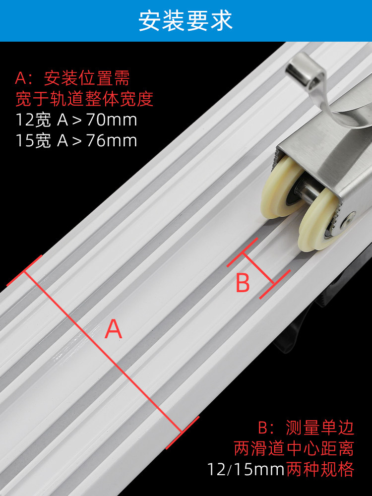 窗帘轨道双轨滑轮直轨重型加厚静音窗帘盒侧顶装 导轨窗帘滑道配件