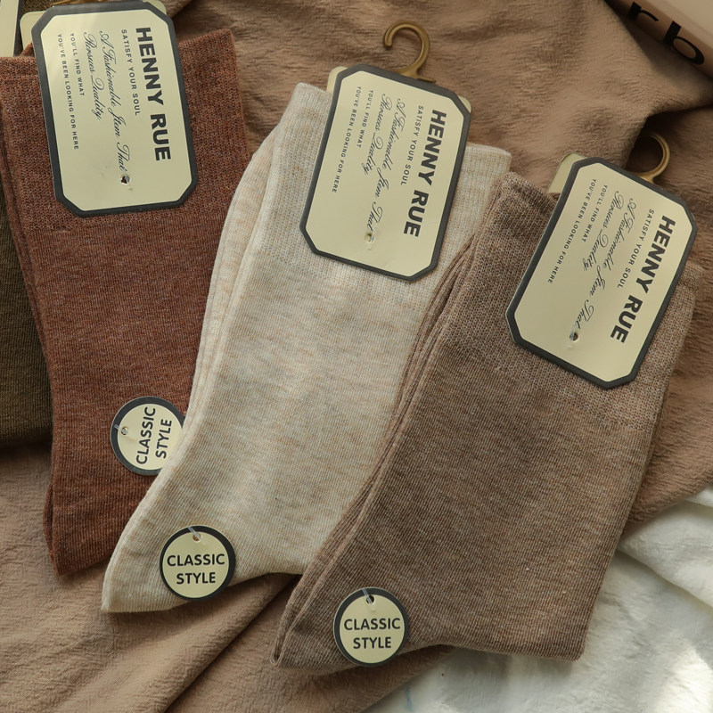 4双 复古大地色简约百搭中筒袜女长袜子 店主醉爱穿B入基础棉袜