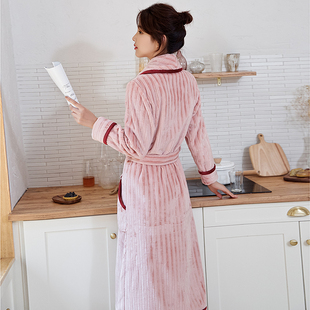 睡袍女高级感法兰绒男浴袍冬季 睡裙加厚加绒珊瑚绒睡衣女2025新款