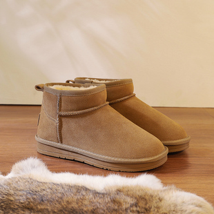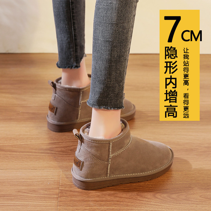 子 加绒厚短筒低帮保暖面包棉鞋 防水内增高雪地靴女冬季 2025年新款