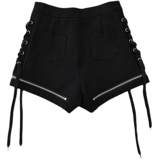 嘻哈街舞性感 运动健身弹力绑带打底超短裤 紧身短裤 女高腰黑色热裤