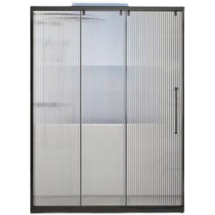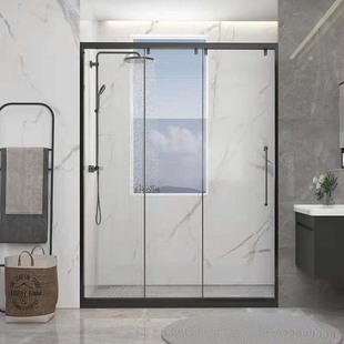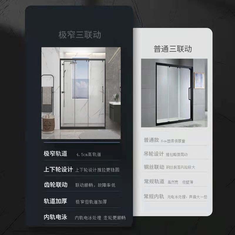 极窄三联动缓冲淋浴房隔断一字型浴室卫生间干湿分离推拉门洗澡间