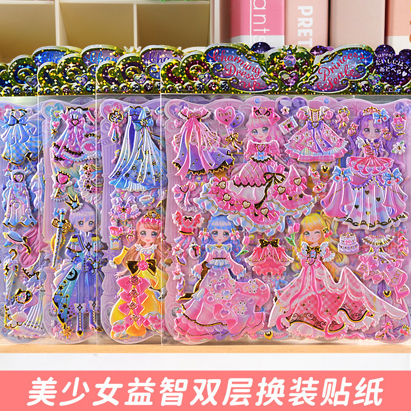 6岁化妆安静书美丽换妆女孩少女心粘贴玩具圣诞节元 秀生日礼物儿童diy手工制作启蒙益智卡通贴贴画3 旦礼物 贴纸书妆扮时尚 公主换装