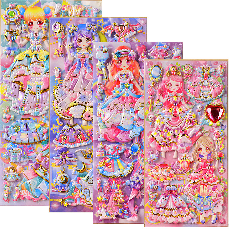 儿童宝石贴纸水晶钻石卡通贴贴画公主女孩3d立体奖励粘贴装 饰玩具