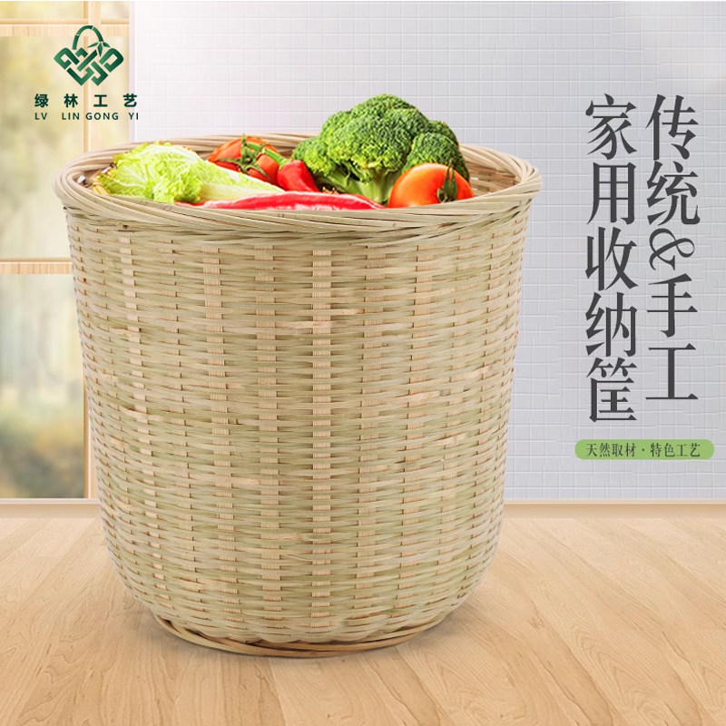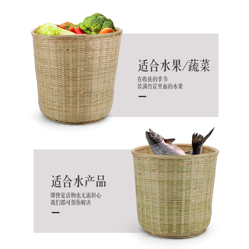 竹编织圆桶竹筐家用商用收纳水果蔬菜篮厨房拉圾篓大箩筐大中小号