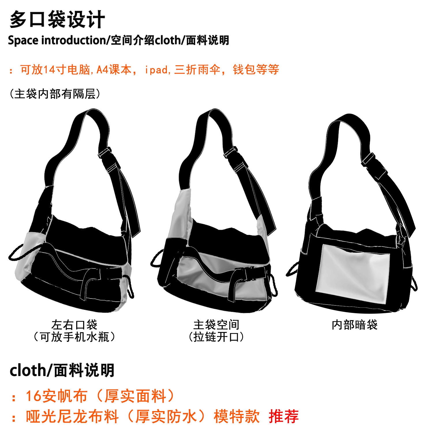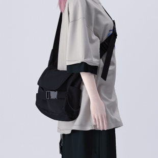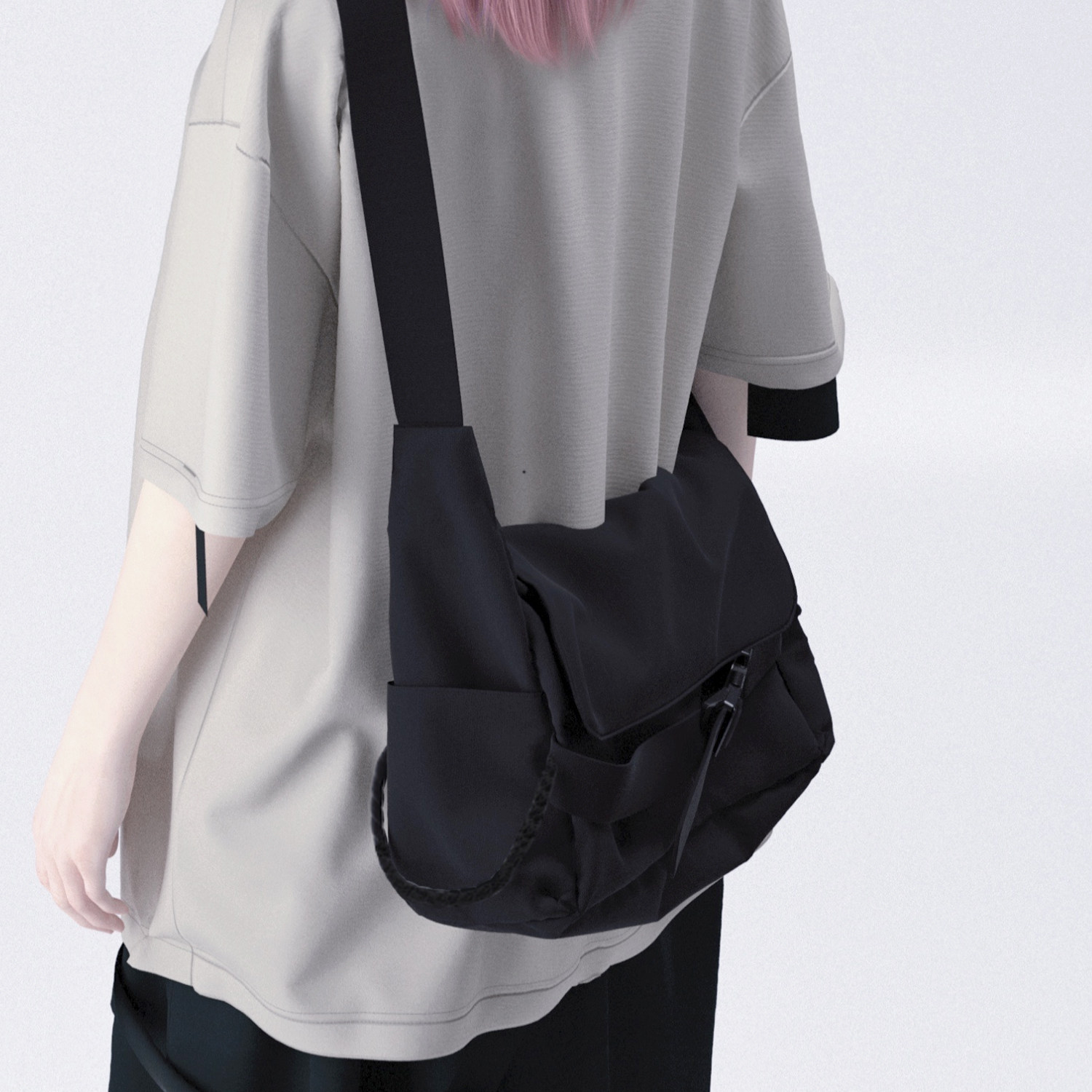 YONAIGA 原创INS日系黑色百搭单肩斜挎包帆布学生书包背包包男女
