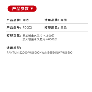 MS6600NW带芯片 pd202墨盒MS6600碳粉MS6550NW粉盒pd222 晖达适用奔图ms6000硒鼓s2000 MS6000nw打印机MS6550
