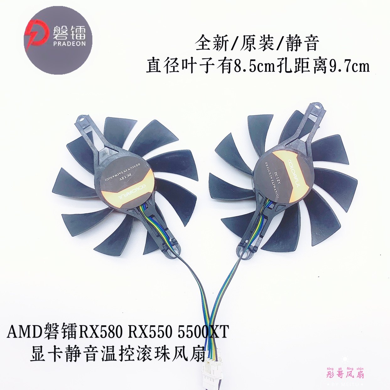 显卡静音温控滚珠风扇 5500XT AMD磐镭RX580 RX550