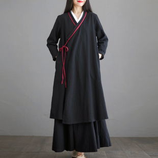武当道袍太极服道服中国风茶服禅服茶艺师服装 系带汉服女连衣裙春