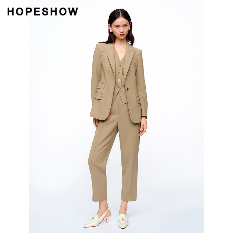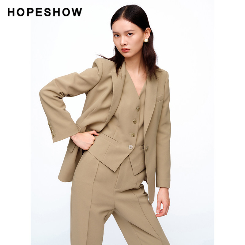 纯色一粒扣翻领一手长西装 红袖 女装 新款 外套 2024春季