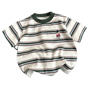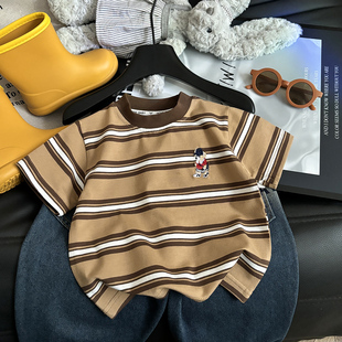 上衣 潮帅气宽松白色女宝宝男童男孩夏装 儿童纯棉刺绣短袖 T恤夏季