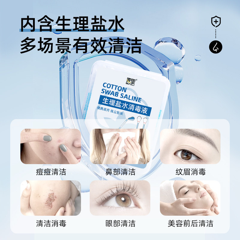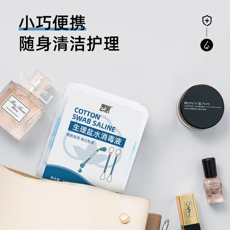 麦里生理性盐水棉签一次性儿童消毒液清洁洗耳洞鼻子湿棉棒小支