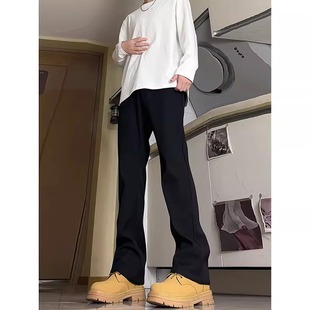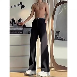 子高个子加长垂感直筒冰丝裤 黑色柳叶弯刀西裤 男高腰显瘦微喇叭裤