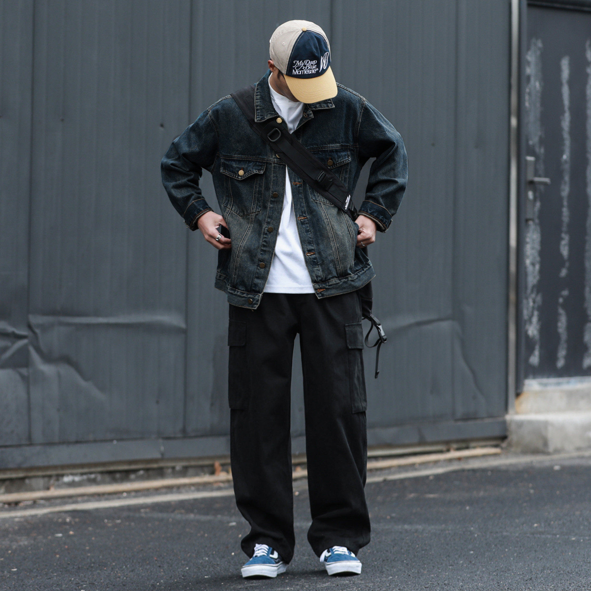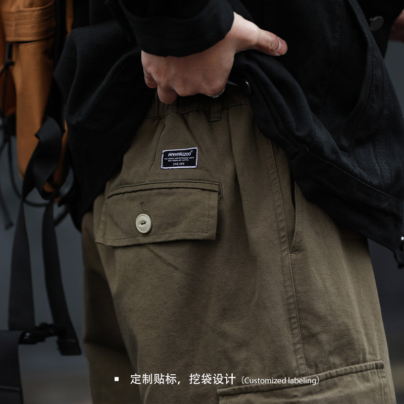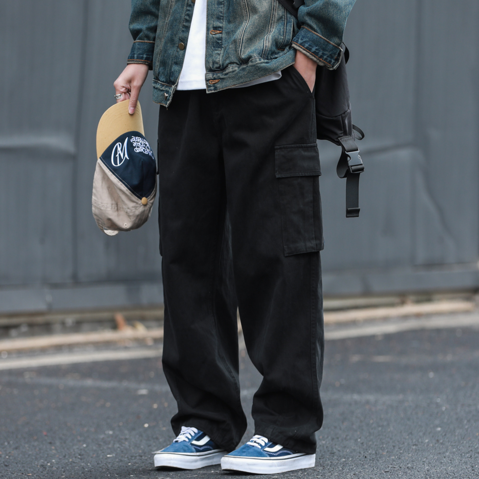 复古大口袋抽褶设计工装 宽松休闲直筒裤 裤 男士 潮 春季 嘿马七作美式