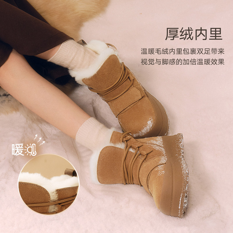 东北雪地靴厚底增高棉鞋 骆驼女鞋 加绒加厚短靴女款 香菇来了