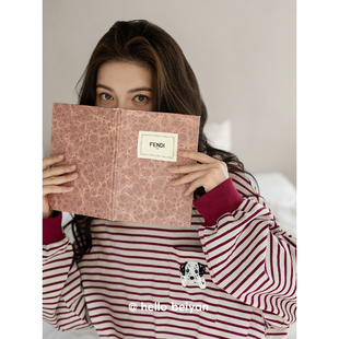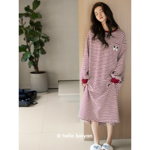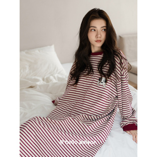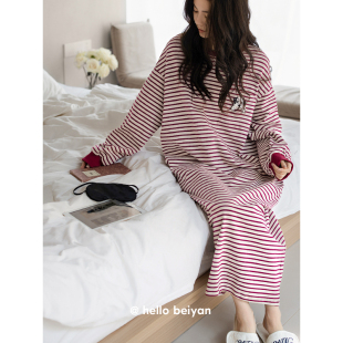 连衣裙 简约条纹睡裙可外穿少女大码 贝妍睡衣女春秋新款 柔软棉长袖