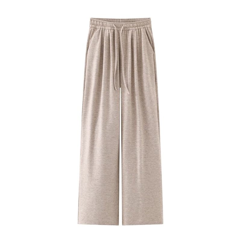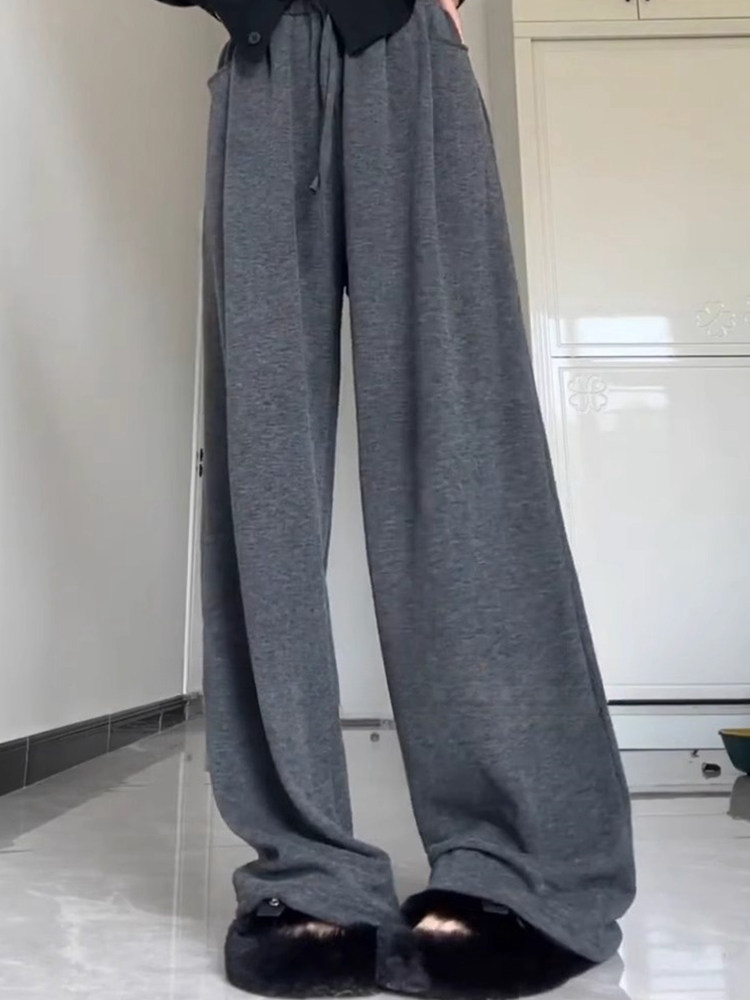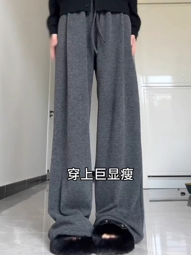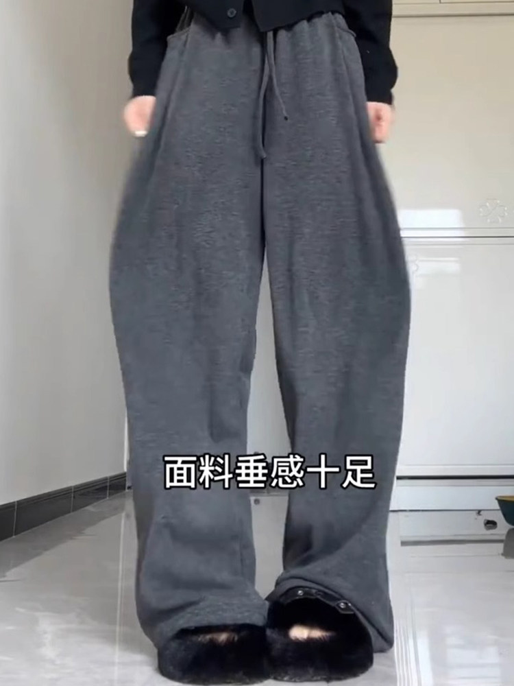 宽松垂感直筒拖地长裤 大码 梨型身材遮胯阔腿裤 女秋季 深灰色糯米裤