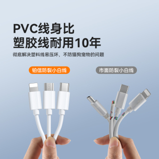 铂信充电器三合一线100w数据线充电头一拖三多功能多头三头100w充电线快充USB适用苹果安卓手机通用typec插头