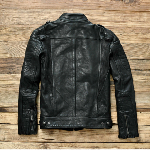 显瘦秋冬防风重水洗机车皮衣 立领头层牛皮休闲修身 2025新款 男士