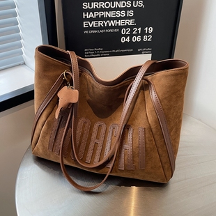 美拉德复古麂皮绒包包女秋冬时尚 高级感托特包大容量通勤单肩大包