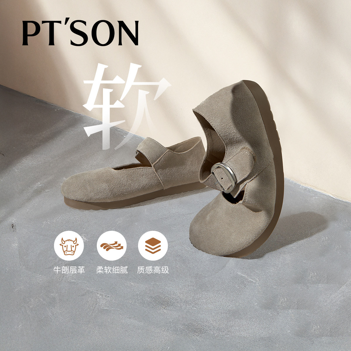 杏色百搭通勤女鞋 热风平底勃肯鞋 复古百搭软木鞋 新款 女2026年春季