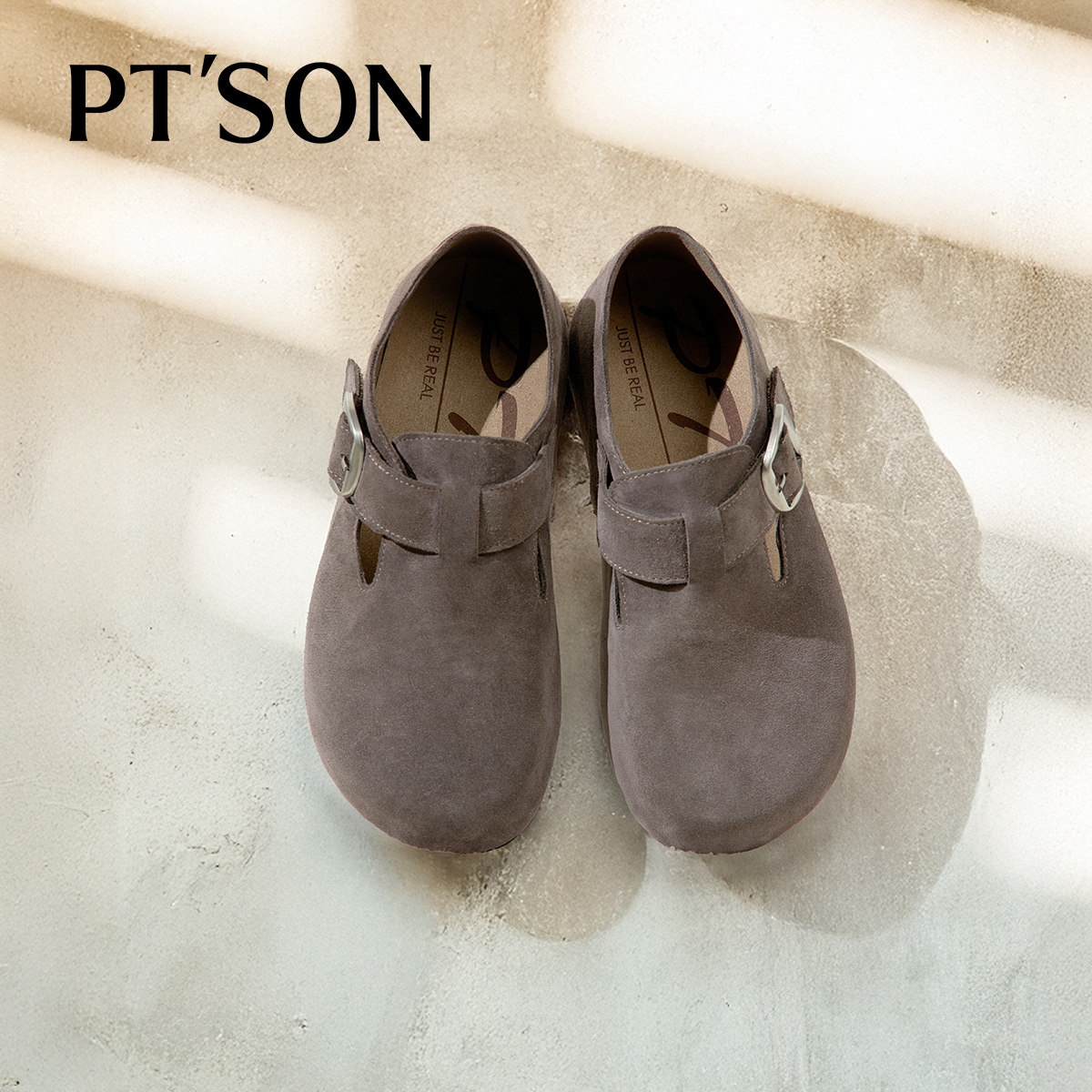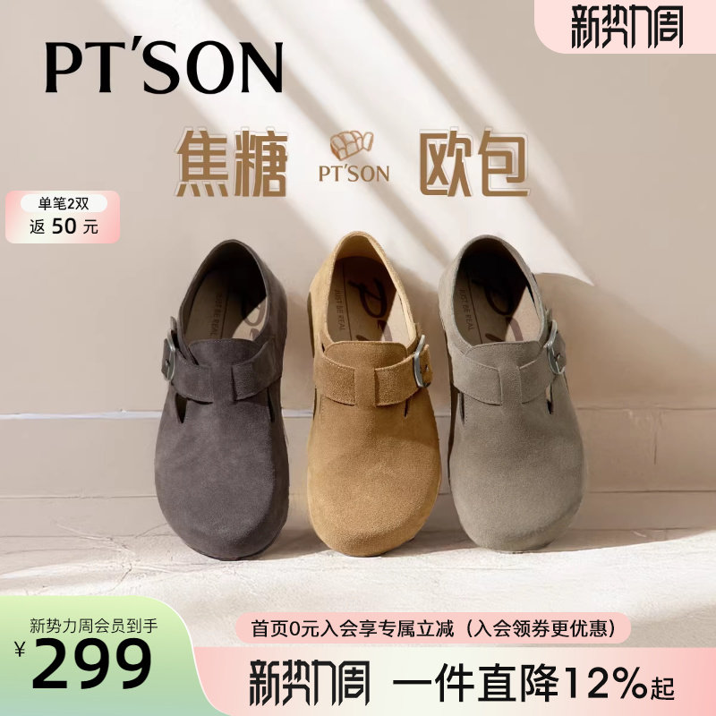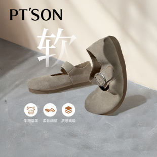 丁字鞋 全包日系情侣牛皮低帮复古平底勃肯London系列 软木包头女鞋