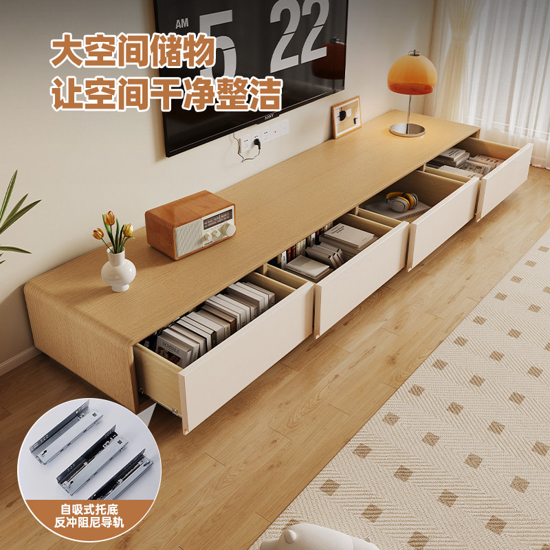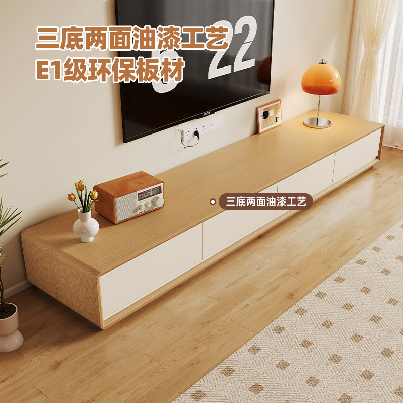 帕沙曼原木风实木电视柜收纳储物柜一体组合墙客厅家用简约落地柜