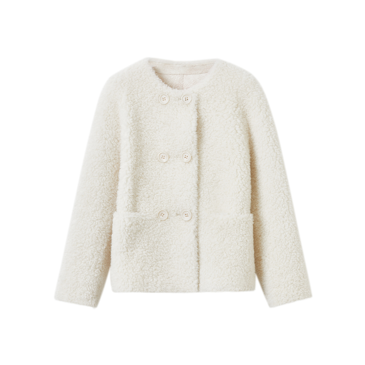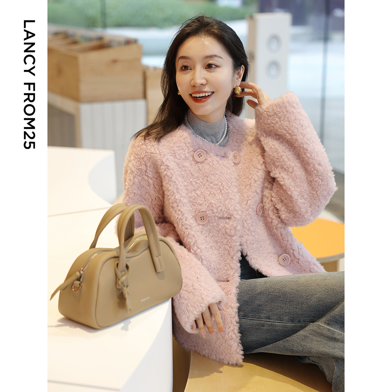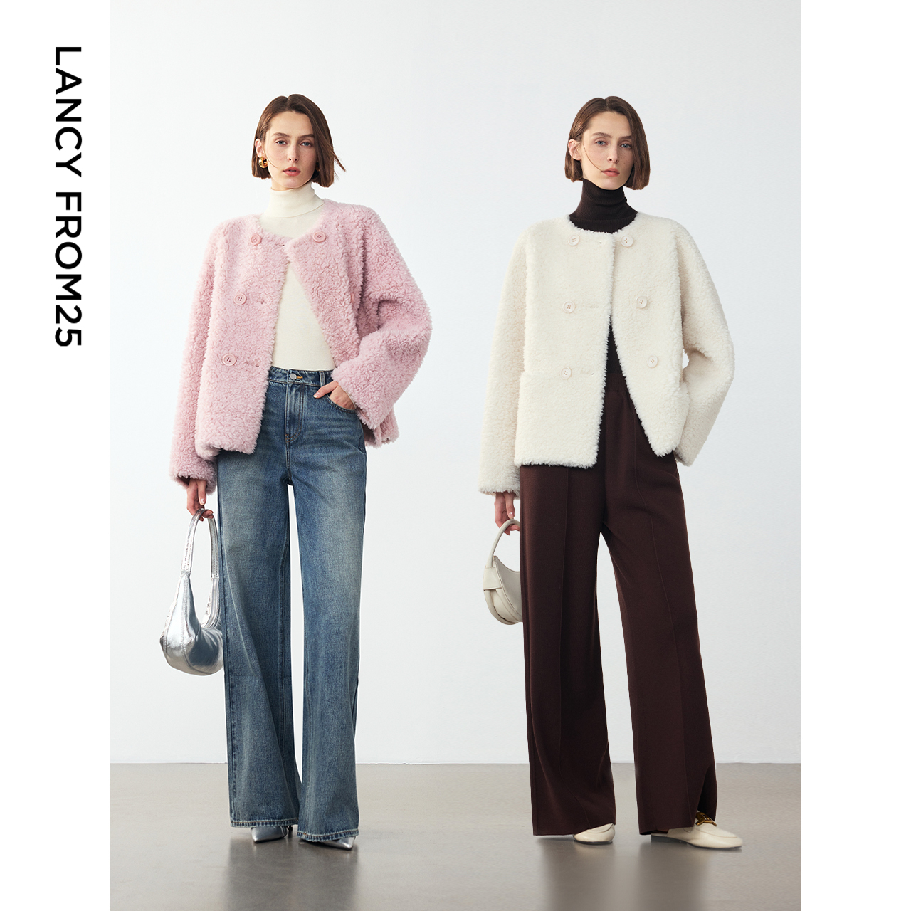 2025冬新款 羊羔毛外套女仿皮草兔毛绒毛茸茸短外套加厚牛角扣棉服