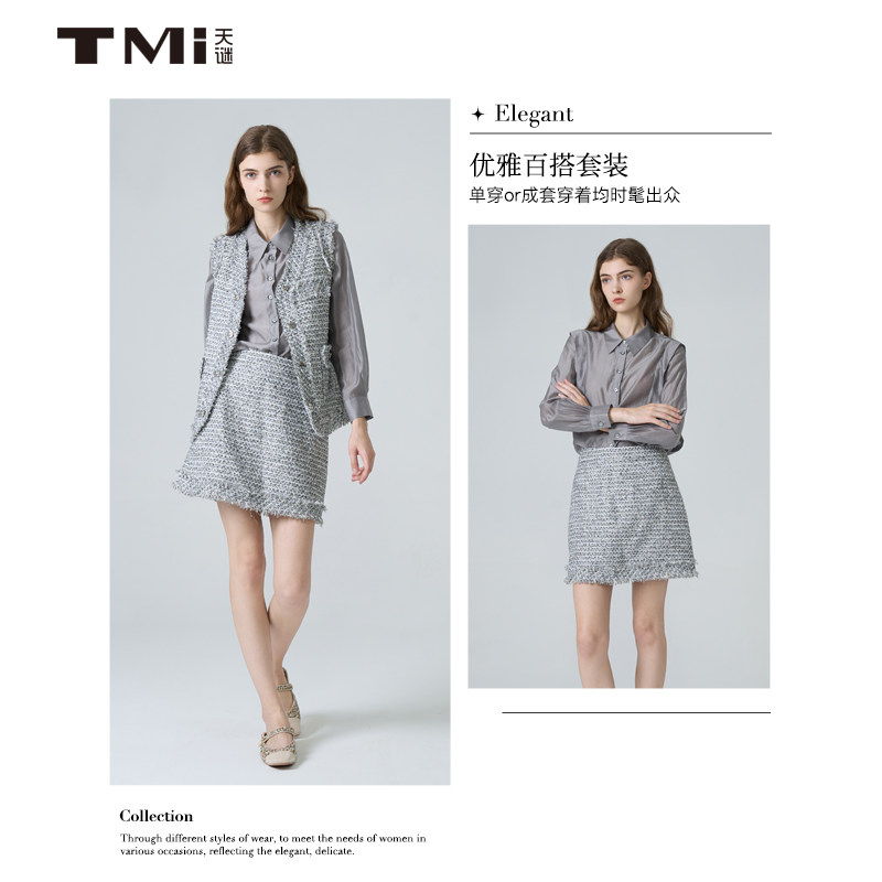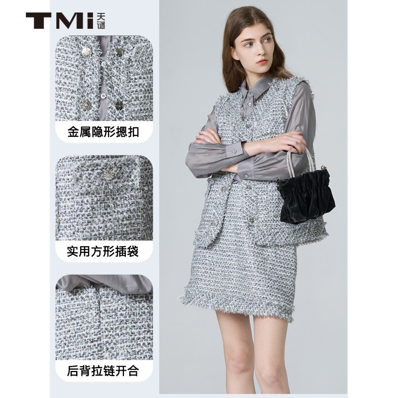 新品 套裙2024秋季 TMi243056 简约优雅拉毛小香风时尚 天谜套装