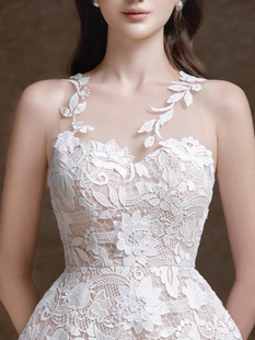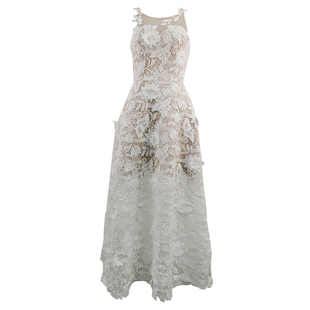 越南设计师高级感重工水溶刺绣隐形蕾丝背心长裙女神范白色连衣裙