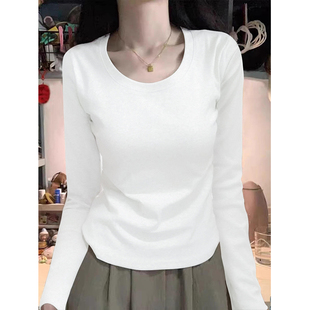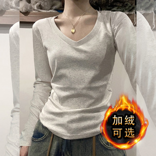 女2025秋冬季 基础款 新款 t恤修身 黑上衣 内搭长袖 灰色V领纯棉打底衫