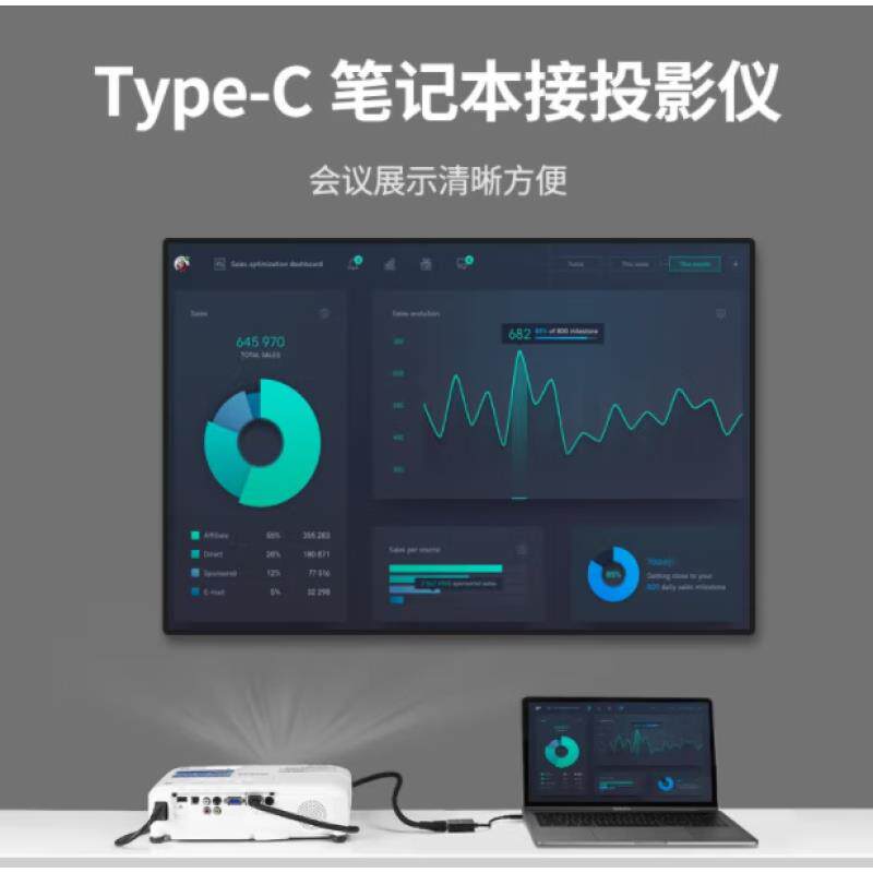 C转VGA转换器适用Mac笔记本接投影仪 绿联 Type CM140 UGREEN