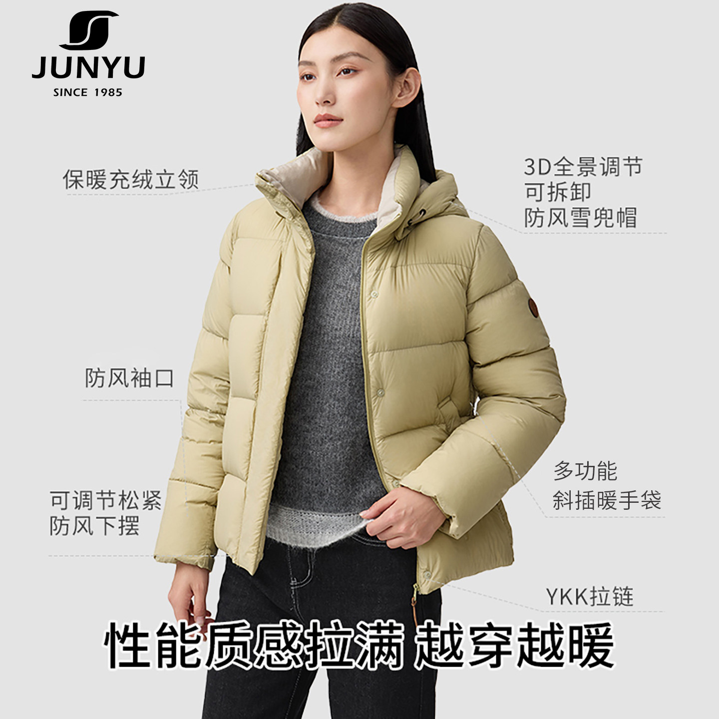 立领95%绒子鹅绒服女面包服女短款 君羽800蓬鹅绒服女短款 黑金