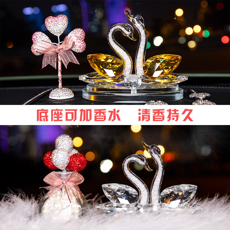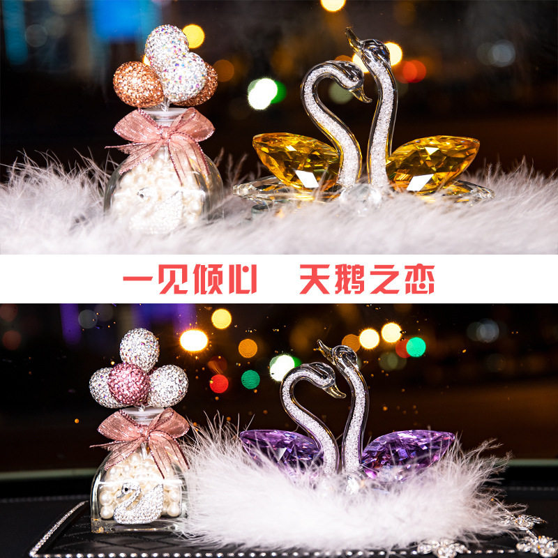 创意浪漫镶钻气球水晶天鹅汽车摆件车载内饰品水晶天鹅车载香水座