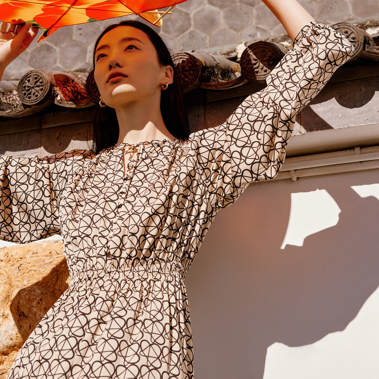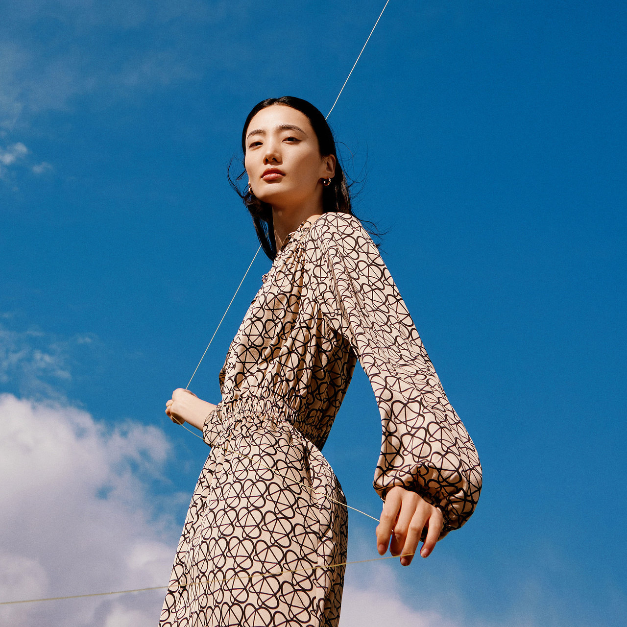 IMM尹默春22MM真丝桑波缎独家风筝印花V领H版 型连衣长裙女