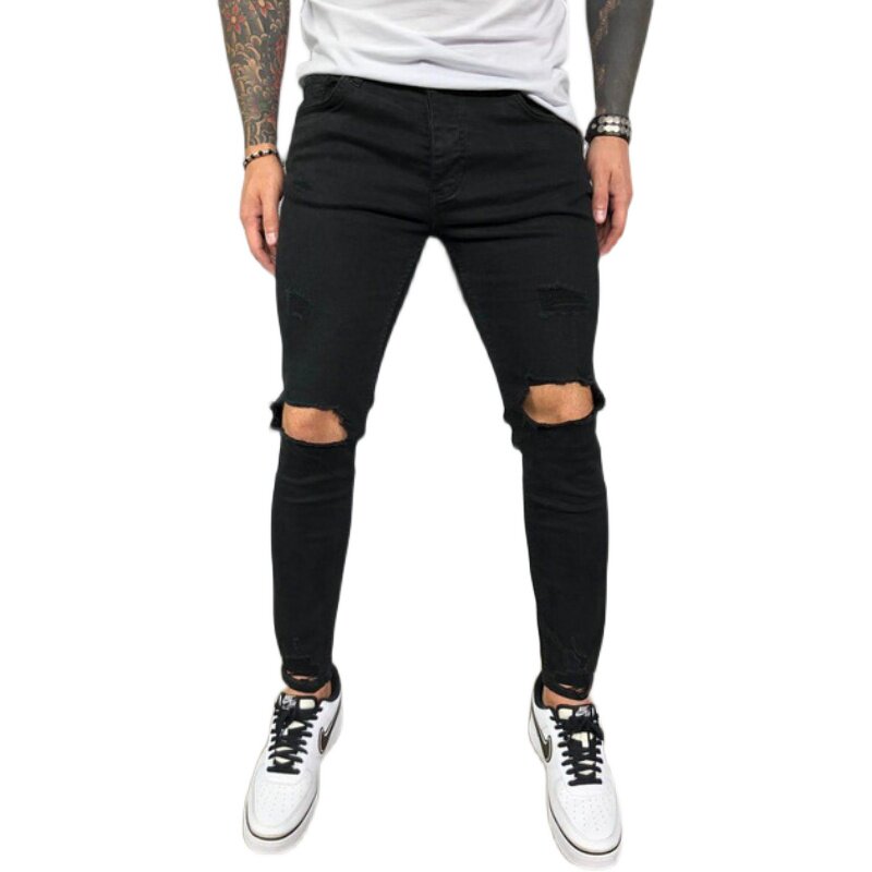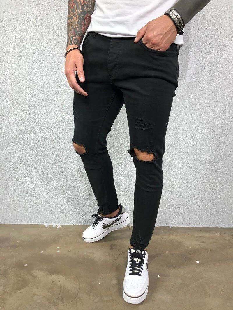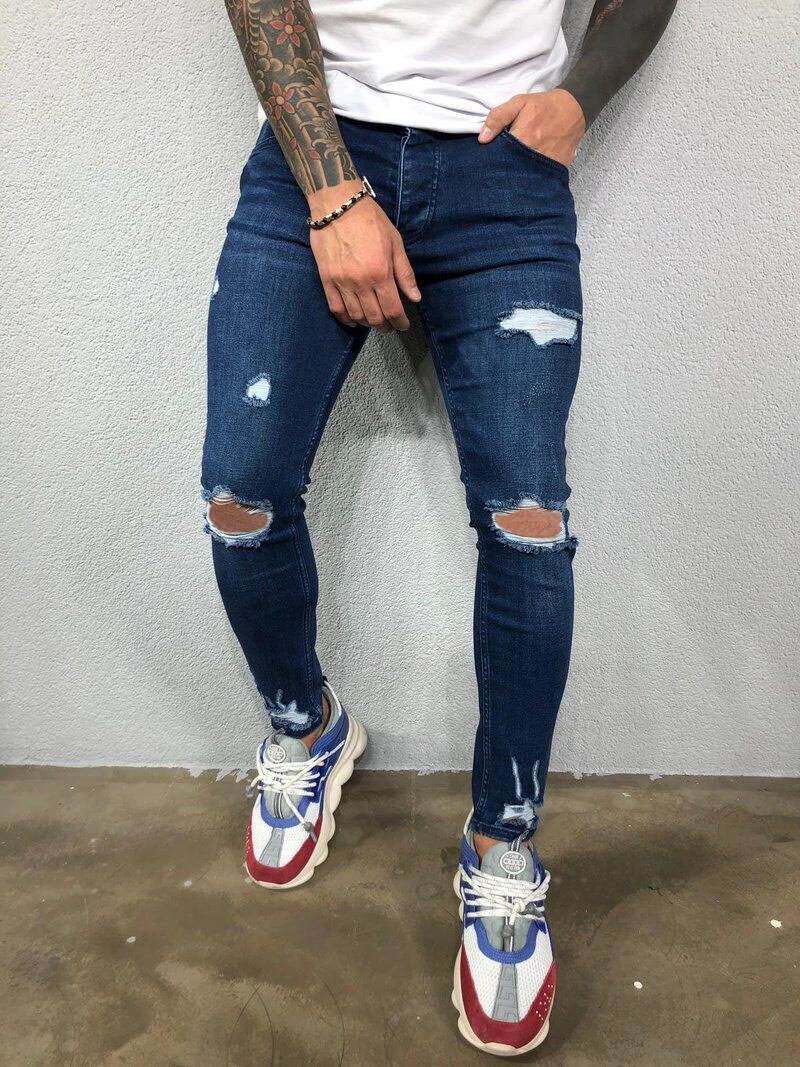 Skinny Black Trousers Ripped Biker Pants Jeans Man Men Blue