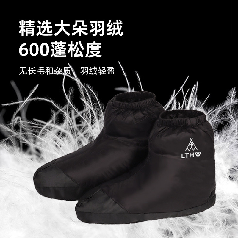 旅腾户外灰白鸭绒男女脚套冬季 套 室内轻量保暖羽绒袜套露营家居鞋