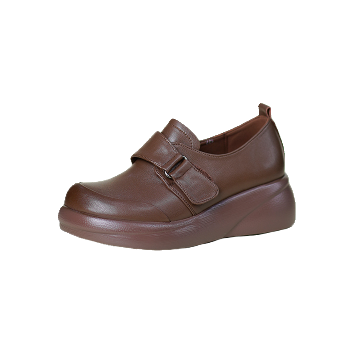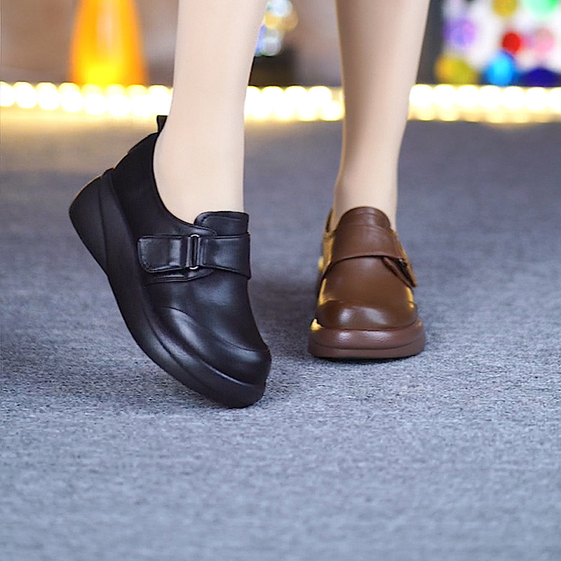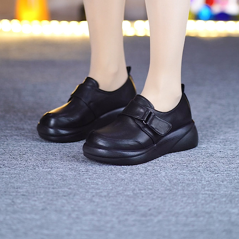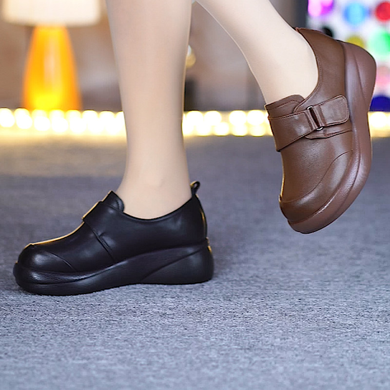 头层牛皮一体跟魔术贴软底软面深口单鞋 新款 女春季 真皮厚底单鞋