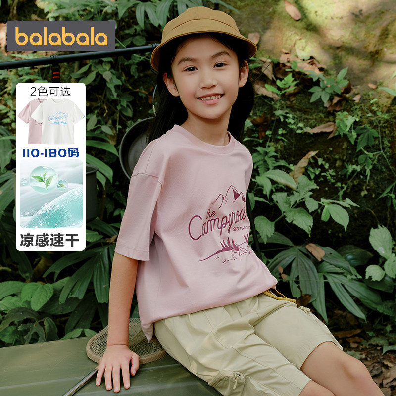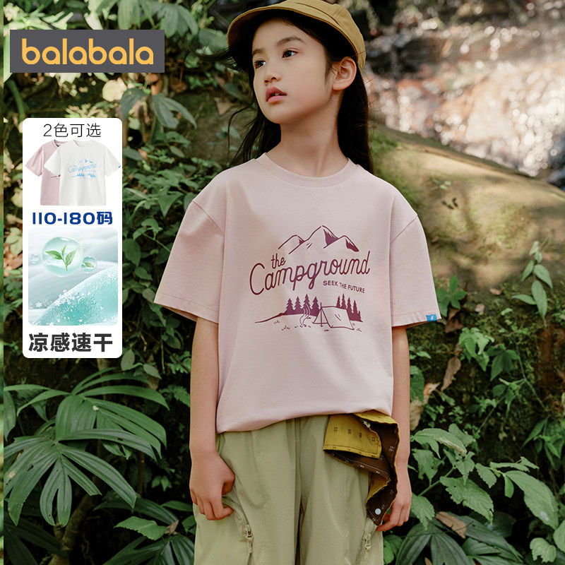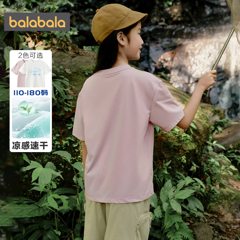 薄 儿童速干衣夏季 巴拉巴拉男童女童短袖 T恤中大童宝宝白色打底衫