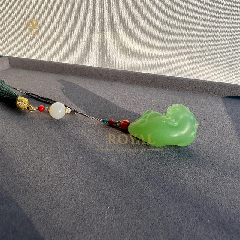 ROYAL珠宝满绿翠青貔貅手把件送人女朋友老婆节生日订结婚礼物