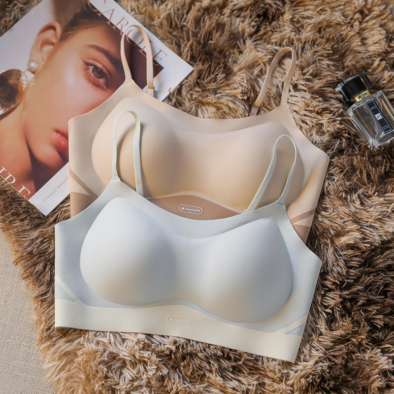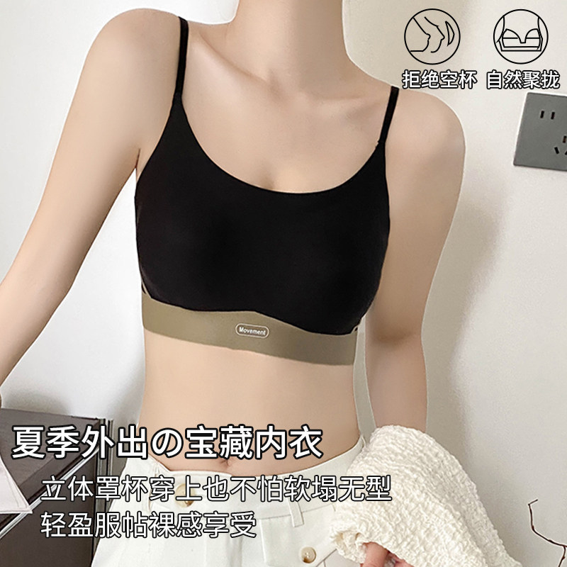 美背内衣女聚拢小胸夏季 运动无痕胸罩背心吊带文胸一体 无钢圈薄款