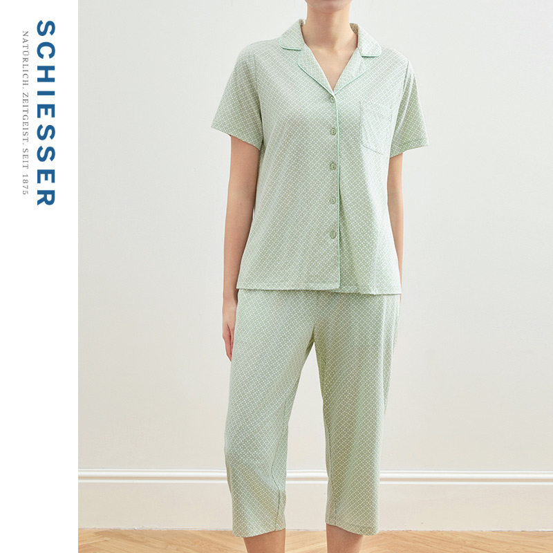 SCHIESSER舒雅女士32S棉莫代尔柔软透气翻领睡衣家居服套装 22644H