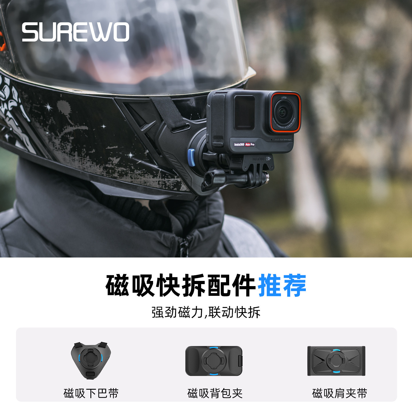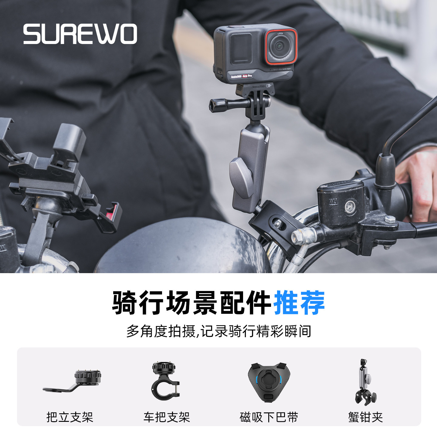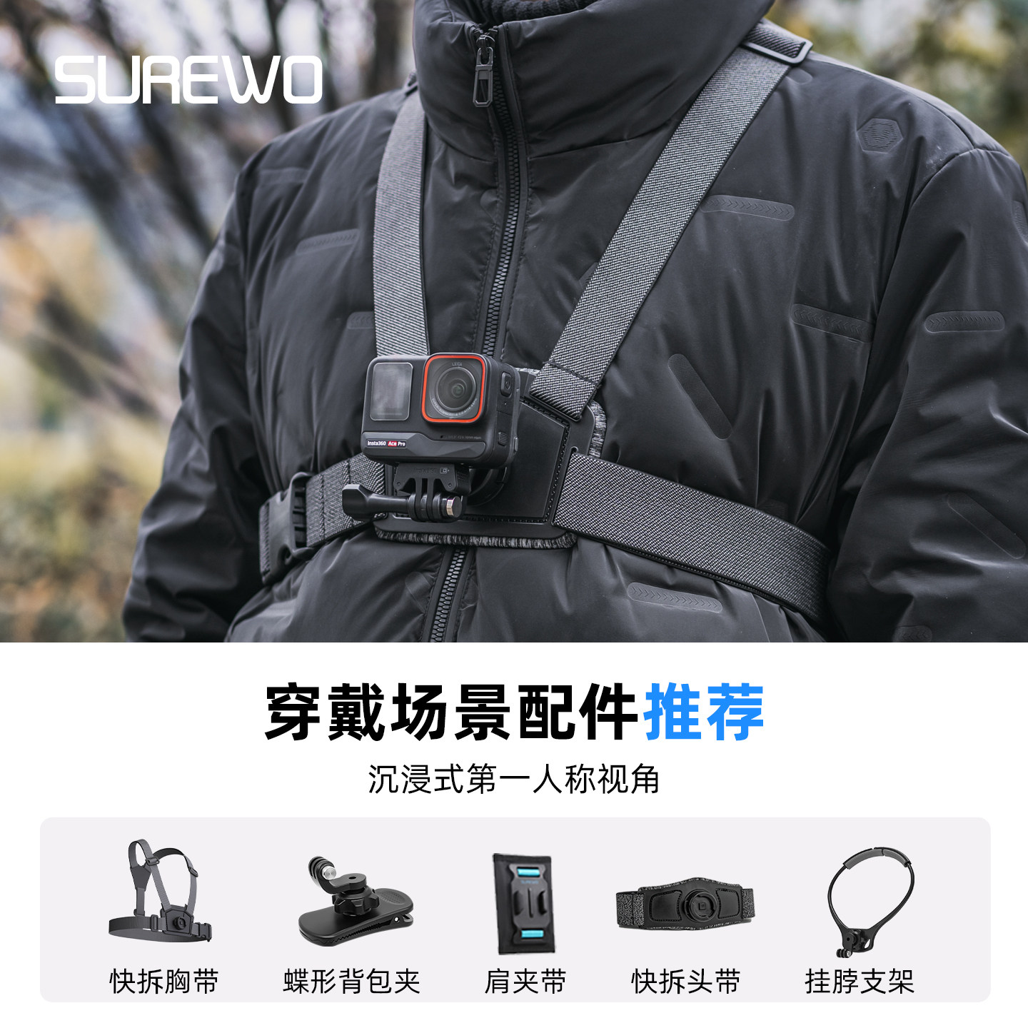 适用于影石Insta360 Pro头带胸带背包夹挂脖三脚架收纳包骑行钓鱼vlog运动相机支架第一视角配件 Ace