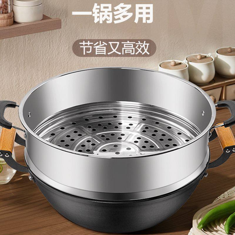 美 不粘 不花芯电炒锅家用多功能炒菜锅火锅煮锅大容量煎炒一体式